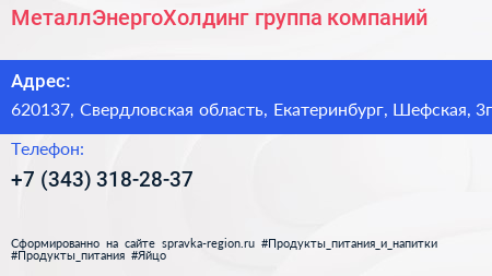 МеталлЭнергоХолдинг, группа компаний по адресу 620137, Свердловская область, Екатеринбург, Шефская, 3г в дальнейшем Организация, размещена в следующих категориях: