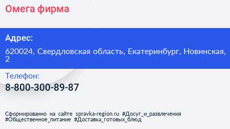 Омега, фирма по адресу 620024, Свердловская область, Екатеринбург, Новинская, 2 в дальнейшем Организация, размещена в следующих категориях: