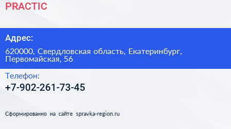 PRACTIC по адресу 620000, Свердловская область, Екатеринбург, Первомайская, 56 в дальнейшем Организация, размещена в следующих категориях: