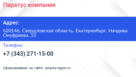 Паратус, компания по адресу 620146, Свердловская область, Екатеринбург, Начдива Онуфриева, 55 в дальнейшем Организация, размещена в следующих категориях: