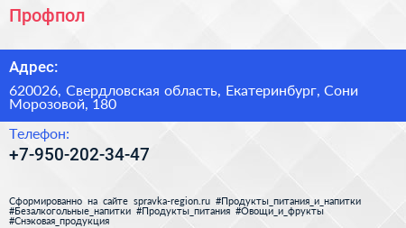 Профпол по адресу 620026, Свердловская область, Екатеринбург, Сони Морозовой, 180 в дальнейшем Организация, размещена в следующих категориях: