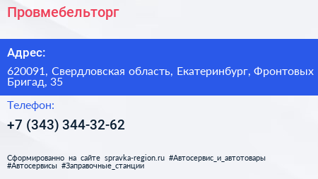 Провмебельторг по адресу 620091, Свердловская область, Екатеринбург, Фронтовых Бригад, 35 в дальнейшем Организация, размещена в следующих категориях: