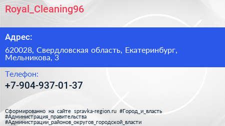 Royal_Cleaning96 по адресу 620028, Свердловская область, Екатеринбург, Мельникова, 3 в дальнейшем Организация, размещена в следующих категориях: