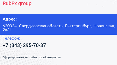 RubEx group по адресу 620024, Свердловская область, Екатеринбург, Новинская, 2в/1 в дальнейшем Организация, размещена в следующих категориях: