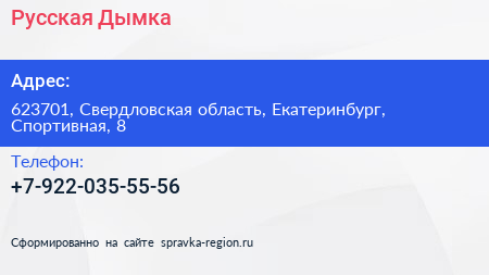 Русская Дымка по адресу 623701, Свердловская область, Екатеринбург, Спортивная, 8 в дальнейшем Организация, размещена в следующих категориях: