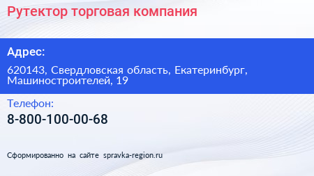 Рутектор, торговая компания по адресу 620143, Свердловская область, Екатеринбург, Машиностроителей, 19 в дальнейшем Организация, размещена в следующих категориях: