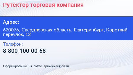 Рутектор, торговая компания по адресу 620076, Свердловская область, Екатеринбург, Короткий переулок, 12 в дальнейшем Организация, размещена в следующих категориях:
