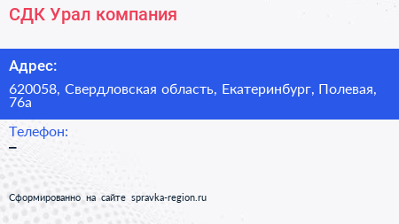 СДК-Урал, компания по адресу 620058, Свердловская область, Екатеринбург, Полевая, 76а в дальнейшем Организация, размещена в следующих категориях: