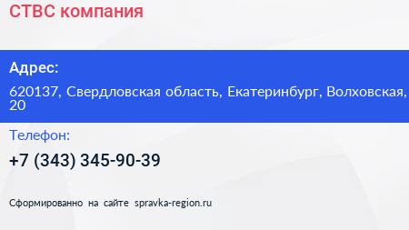 СТВС, компания по адресу 620137, Свердловская область, Екатеринбург, Волховская, 20 в дальнейшем Организация, размещена в следующих категориях: