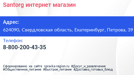Santorg, интернет-магазин по адресу 624090, Свердловская область, Екатеринбург, Петрова, 39 в дальнейшем Организация, размещена в следующих категориях:
