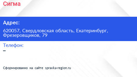 Сигма по адресу 620057, Свердловская область, Екатеринбург, Фрезеровщиков, 79 в дальнейшем Организация, размещена в следующих категориях: