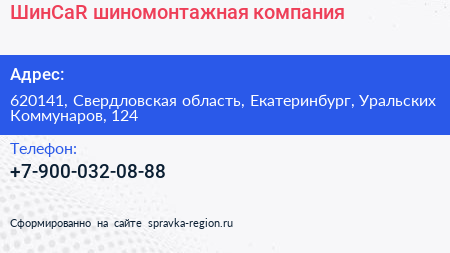 ШинCaR, шиномонтажная компания по адресу 620141, Свердловская область, Екатеринбург, Уральских Коммунаров, 124 в дальнейшем Организация, размещена в следующих категориях: