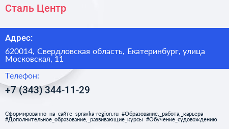 Сталь-Центр по адресу 620014, Свердловская область, Екатеринбург, улица Московская, 11 в дальнейшем Организация, размещена в следующих категориях:
