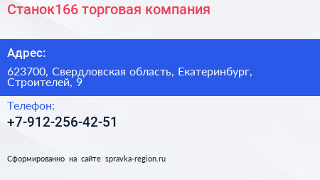 Станок166, торговая компания по адресу 623700, Свердловская область, Екатеринбург, Строителей, 9 в дальнейшем Организация, размещена в следующих категориях: