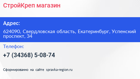 СтройКреп, магазин по адресу 624090, Свердловская область, Екатеринбург, Успенский проспект, 34 в дальнейшем Организация, размещена в следующих категориях: