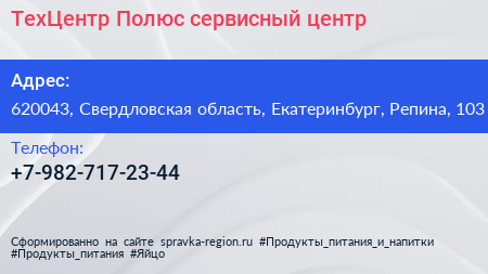 ТехЦентр Полюс, сервисный центр по адресу 620043, Свердловская область, Екатеринбург, Репина, 103 в дальнейшем Организация, размещена в следующих категориях: