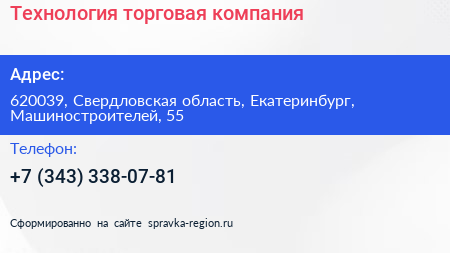 Технология, торговая компания по адресу 620039, Свердловская область, Екатеринбург, Машиностроителей, 55 в дальнейшем Организация, размещена в следующих категориях: