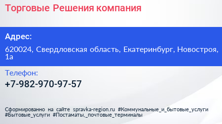 Торговые Решения, компания по адресу 620024, Свердловская область, Екатеринбург, Новостроя, 1а в дальнейшем Организация, размещена в следующих категориях: