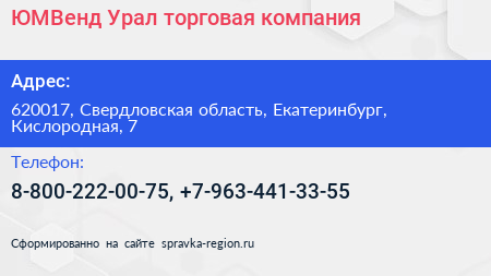 ЮМВенд-Урал, торговая компания по адресу 620017, Свердловская область, Екатеринбург, Кислородная, 7 в дальнейшем Организация, размещена в следующих категориях: