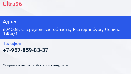 Ultra96 по адресу 624006, Свердловская область, Екатеринбург, Ленина, 148а/1 в дальнейшем Организация, размещена в следующих категориях: