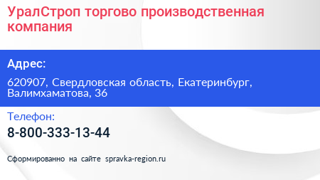 УралСтроп, торгово-производственная компания по адресу 620907, Свердловская область, Екатеринбург, Валимхаматова, 36 в дальнейшем Организация, размещена в следующих категориях: