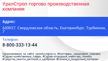 УралСтроп, торгово-производственная компания по адресу 620017, Свердловская область, Екатеринбург, Турбинная, 7 в дальнейшем Организация, размещена в следующих категориях: