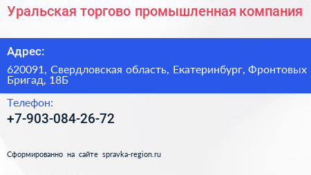 Уральская торгово-промышленная компания по адресу 620091, Свердловская область, Екатеринбург, Фронтовых Бригад, 18Б в дальнейшем Организация, размещена в следующих категориях: