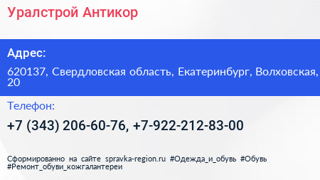 Уралстрой-Антикор по адресу 620137, Свердловская область, Екатеринбург, Волховская, 20 в дальнейшем Организация, размещена в следующих категориях: