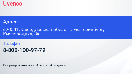 Uvenco по адресу 620041, Свердловская область, Екатеринбург, Кислородная, 8к в дальнейшем Организация, размещена в следующих категориях: