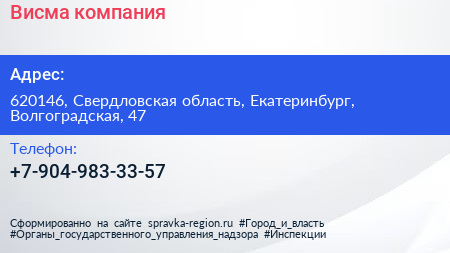 Висма, компания по адресу 620146, Свердловская область, Екатеринбург, Волгоградская, 47 в дальнейшем Организация, размещена в следующих категориях: