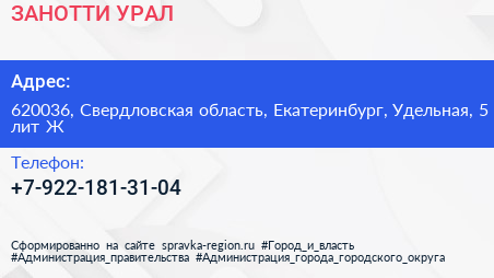 ЗАНОТТИ УРАЛ по адресу 620036, Свердловская область, Екатеринбург, Удельная, 5 лит Ж в дальнейшем Организация, размещена в следующих категориях: