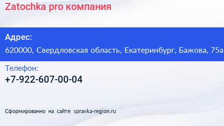 Zatochka pro, компания по адресу 620000, Свердловская область, Екатеринбург, Бажова, 75а в дальнейшем Организация, размещена в следующих категориях:
