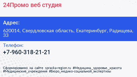 24Промо, веб-студия по адресу 620014, Свердловская область, Екатеринбург, Радищева, 33 в дальнейшем Организация, размещена в следующих категориях: