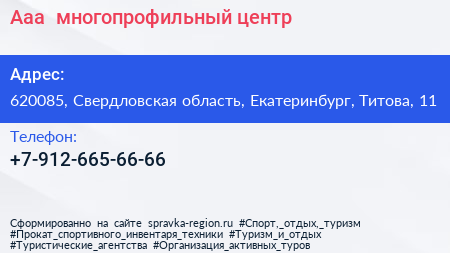 Ааа+, многопрофильный центр по адресу 620085, Свердловская область, Екатеринбург, Титова, 11 в дальнейшем Организация, размещена в следующих категориях: