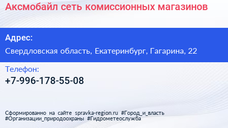 Аксмобайл, сеть комиссионных магазинов по адресу Свердловская область, Екатеринбург, Гагарина, 22 в дальнейшем Организация, размещена в следующих категориях: