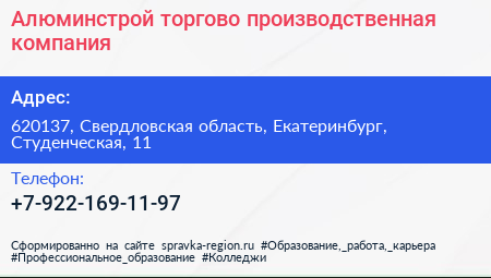 Алюминстрой, торгово-производственная компания по адресу 620137, Свердловская область, Екатеринбург, Студенческая, 11 в дальнейшем Организация, размещена в следующих категориях: