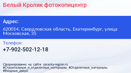 Белый Кролик, фотокопицентр по адресу 620014, Свердловская область, Екатеринбург, улица Московская, 35 в дальнейшем Организация, размещена в следующих категориях: