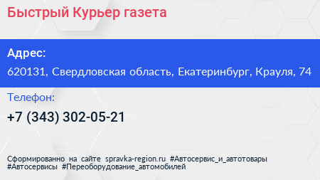 Быстрый Курьер, газета по адресу 620131, Свердловская область, Екатеринбург, Крауля, 74 в дальнейшем Организация, размещена в следующих категориях: