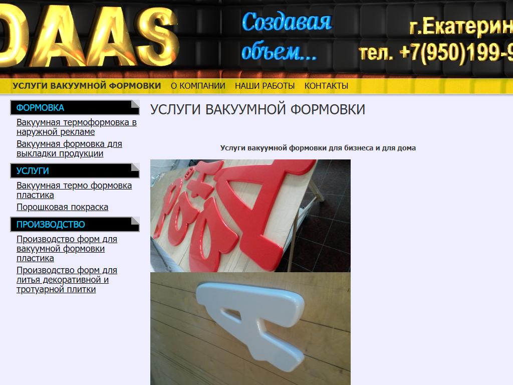 DAAS, компания по изготовлению изделий методом вакуумной формовки по адресу 620076, Свердловская область, Екатеринбург, Походная, 76 в дальнейшем Организация, размещена в следующих категориях: