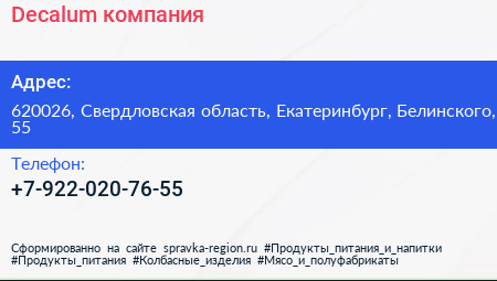 Decalum, компания по адресу 620026, Свердловская область, Екатеринбург, Белинского, 55 в дальнейшем Организация, размещена в следующих категориях: