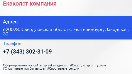 Екахолст, компания по адресу 620028, Свердловская область, Екатеринбург, Заводская, 30 в дальнейшем Организация, размещена в следующих категориях: