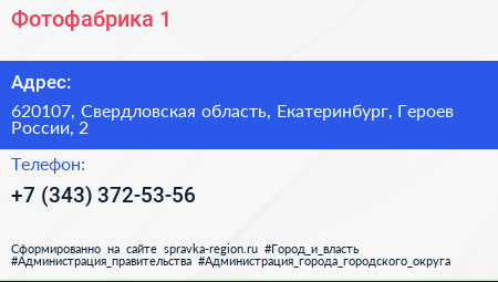 Фотофабрика №1 по адресу 620107, Свердловская область, Екатеринбург, Героев России, 2 в дальнейшем Организация, размещена в следующих категориях: