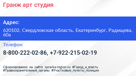 Гранж, арт-студия по адресу 620102, Свердловская область, Екатеринбург, Радищева, 60а в дальнейшем Организация, размещена в следующих категориях: