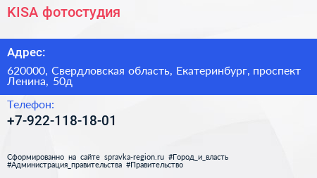 KISA, фотостудия по адресу 620000, Свердловская область, Екатеринбург, проспект Ленина, 50д в дальнейшем Организация, размещена в следующих категориях: