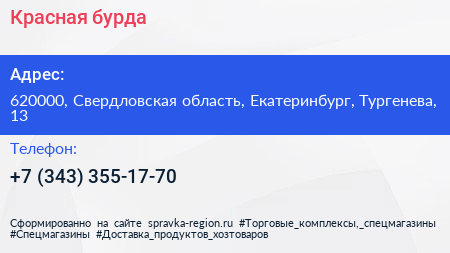 Красная бурда по адресу 620000, Свердловская область, Екатеринбург, Тургенева, 13 в дальнейшем Организация, размещена в следующих категориях: