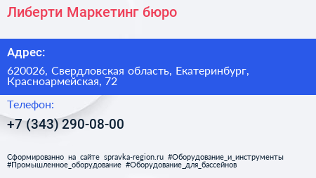 Либерти Маркетинг бюро по адресу 620026, Свердловская область, Екатеринбург, Красноармейская, 72 в дальнейшем Организация, размещена в следующих категориях: