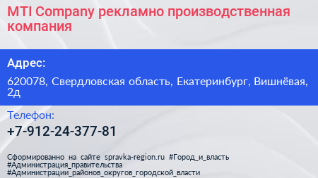 MTI-Company, рекламно-производственная компания по адресу 620078, Свердловская область, Екатеринбург, Вишнёвая, 2д в дальнейшем Организация, размещена в следующих категориях: