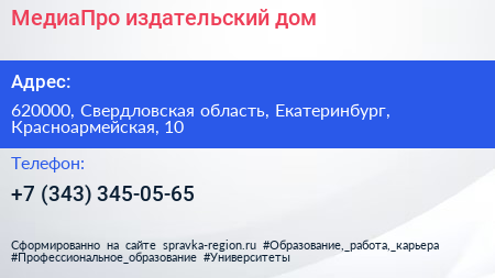МедиаПро, издательский дом по адресу 620000, Свердловская область, Екатеринбург, Красноармейская, 10 в дальнейшем Организация, размещена в следующих категориях: