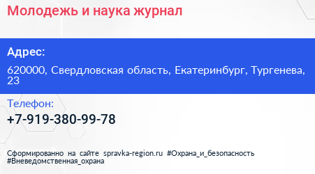 Молодежь и наука, журнал по адресу 620000, Свердловская область, Екатеринбург, Тургенева, 23 в дальнейшем Организация, размещена в следующих категориях: