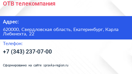 ОТВ, телекомпания по адресу 620000, Свердловская область, Екатеринбург, Карла Либкнехта, 22 в дальнейшем Организация, размещена в следующих категориях: